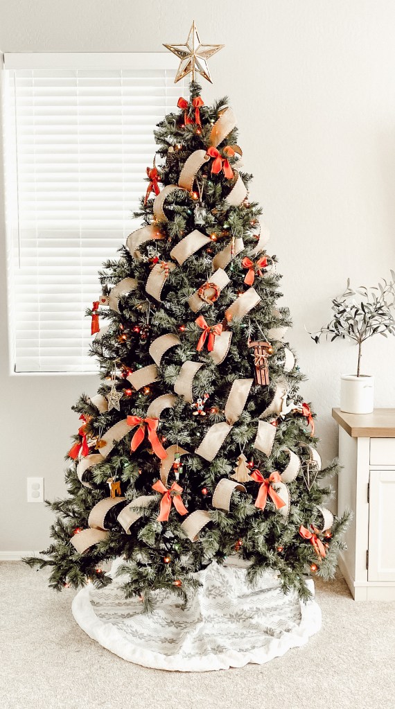 - Unable to link: Star tree topper, Tree skirt, Wreath – All from Target, but bought last year or before