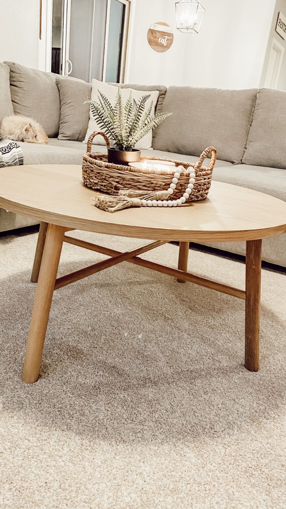 One of my favorite purchases last year was our couch from Living Spaces. Since we got it, I’ve been searching for the perfect coffee table. I didn’t want something too big because I want Mayson to have enough space to play. Well I’m happy to report that I finally found the perfect one! I was scrolling through my Target app looking at the Hearth and Hand line and there it was for only $150. I think it’s really good quality for the price!