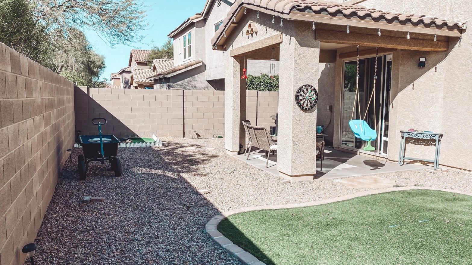 So what are your thoughts on real versus fake grass? Living in Arizona, I feel like it’s hard to keep grass green here. It will be nice to get some good quality fake grass and not have to worry about it. It’s definitely more pricey than seeding or getting sod, but it’s a one-and-done thing. Once we get it, we don’t have to worry about upkeep like watering or over-seeding. We started to clear out the rock today. Yes, we spent Valentine’s Day shoveling rock. That’s what happens when you’ve been together for 12 years. Honestly we’ve never been big on celebrating Valentine’s Day. Anyways, I can’t wait to take you guys along on this project!